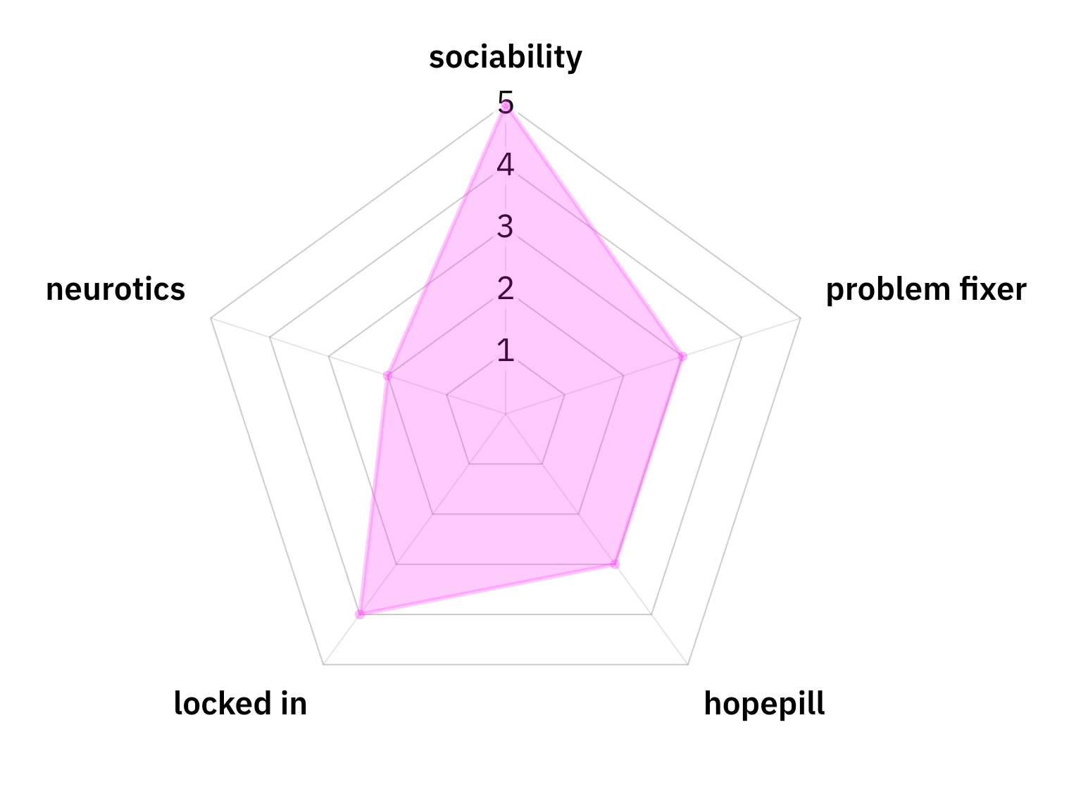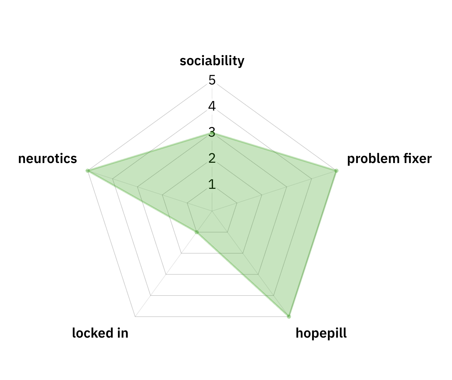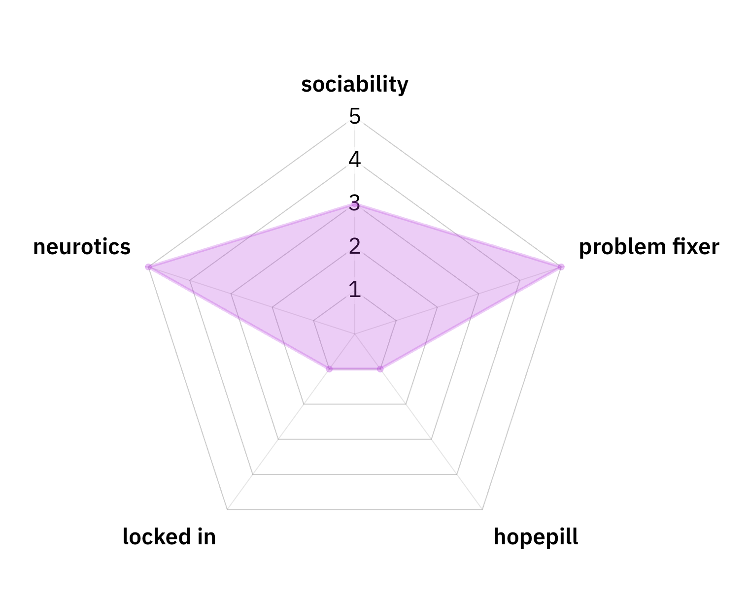 oh yeah, the stats. we gave ourselves stats. by that i mean i took a vague guess based on our usual roles on what those stats would be and linked the radar graph maker i used in case anybody fronts and wants to kill me about it. (i didn't. let me link it here.)