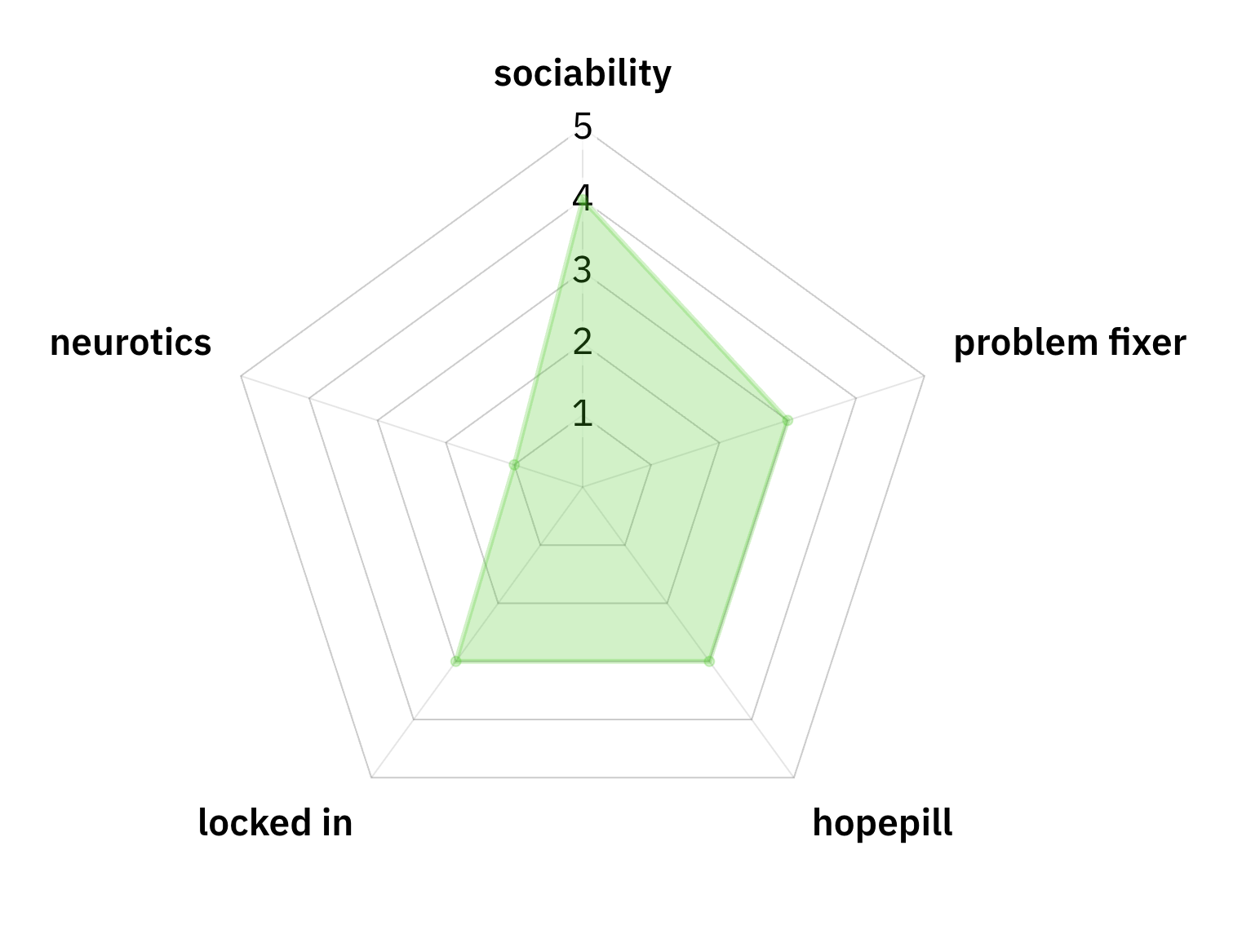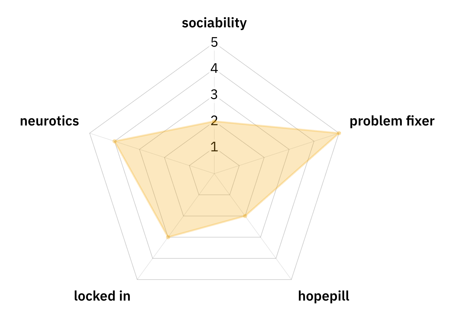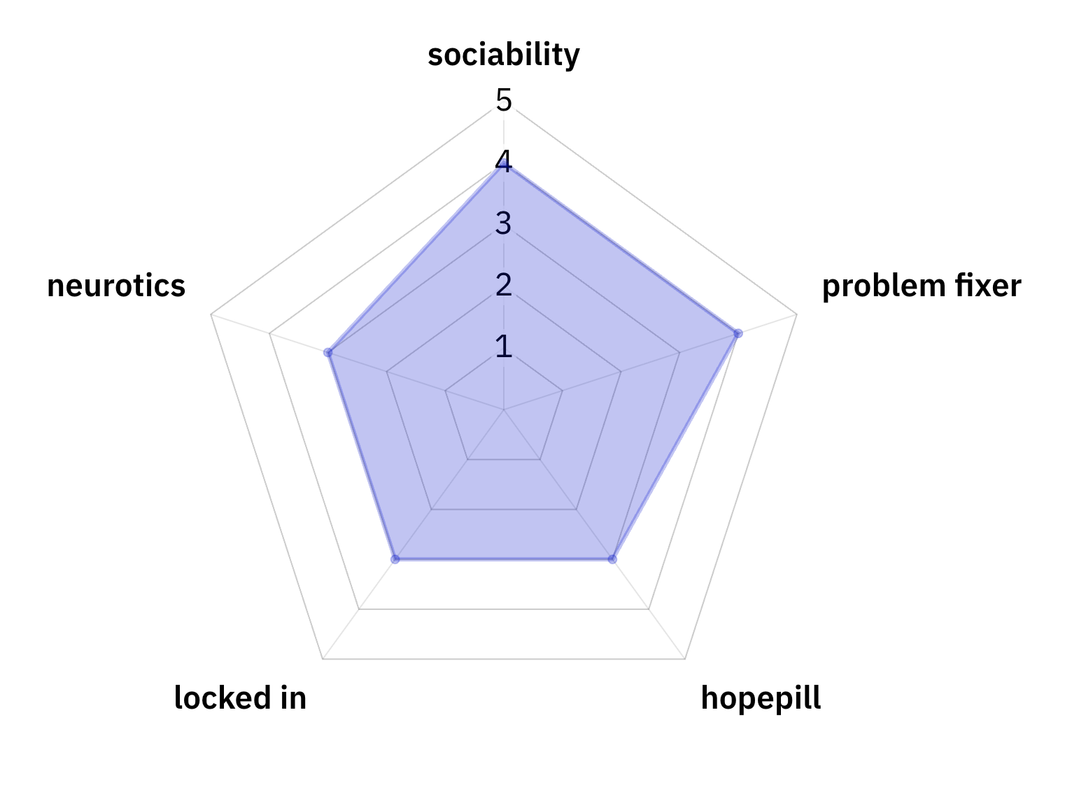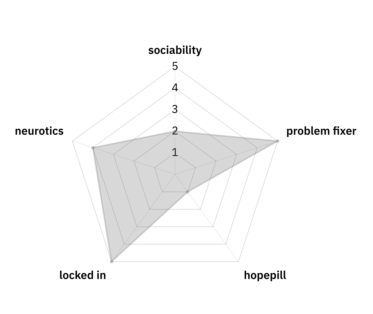 oh yeah, the stats. we gave ourselves stats. by that i mean i took a vague guess based on our usual roles on what those stats would be and linked the radar graph maker i used in case anybody fronts and wants to kill me about it. (i didn't. let me link it here.)